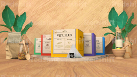 Решением задачи стало создание видеоролика с элементами 3D-графики: так мы могли показать изменения упаковки в объеме. Вместе с коробкой менялись габариты чайного пакетика и вес полезных трав. Это тоже было важно отразить в презентационном видео, чтобы показать преимущества нового дизайна.