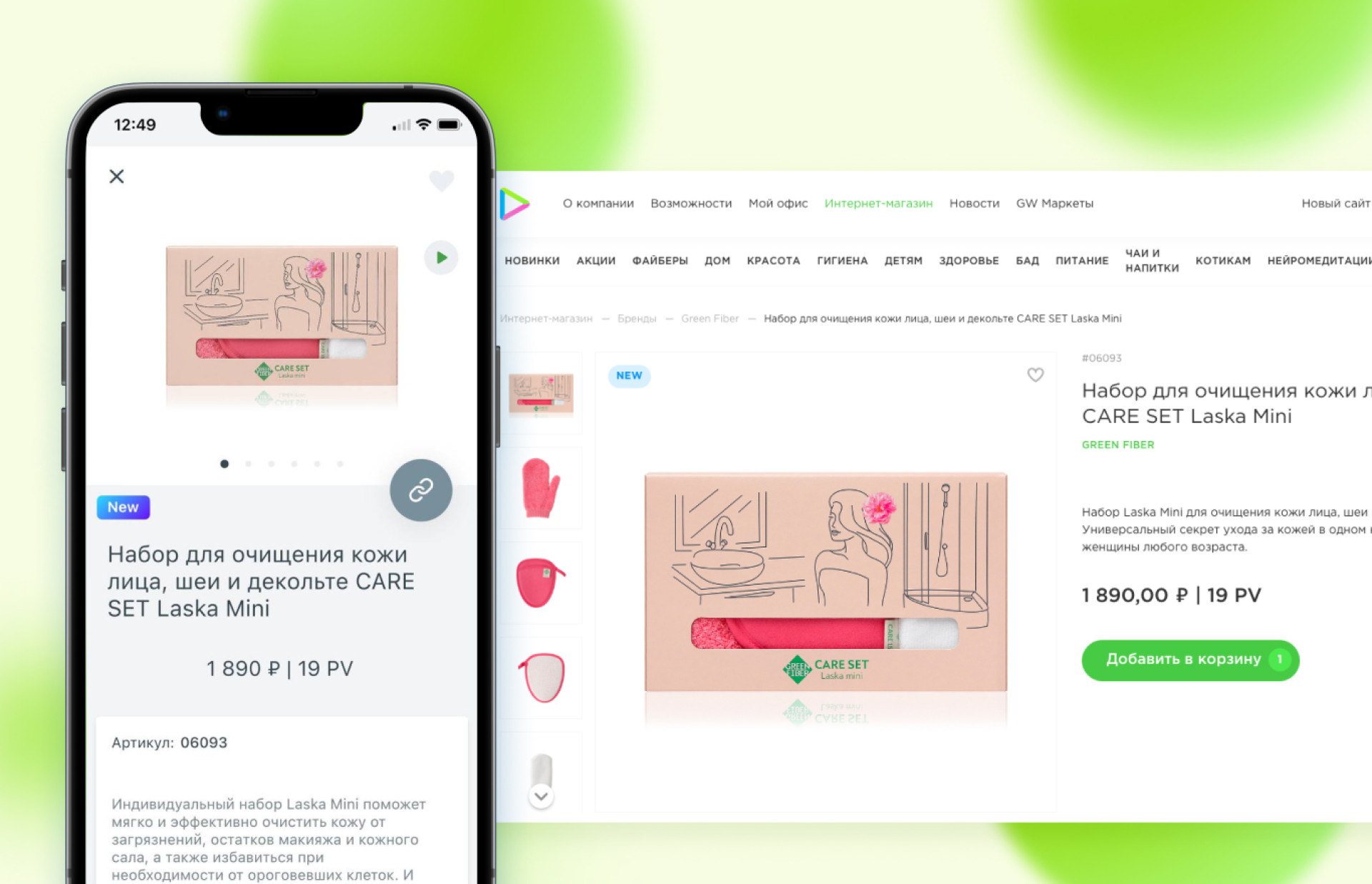 Ключевой элемент приложения — каталог товаров. Когда продукт хорошо показан, то и клиенты его хотят покупать. Растут продажи. Тем более, что каталог доступен всем: и зарегистрированным в системе Greenway Global партнерам, и пользователям, которые зашли «только посмотреть».