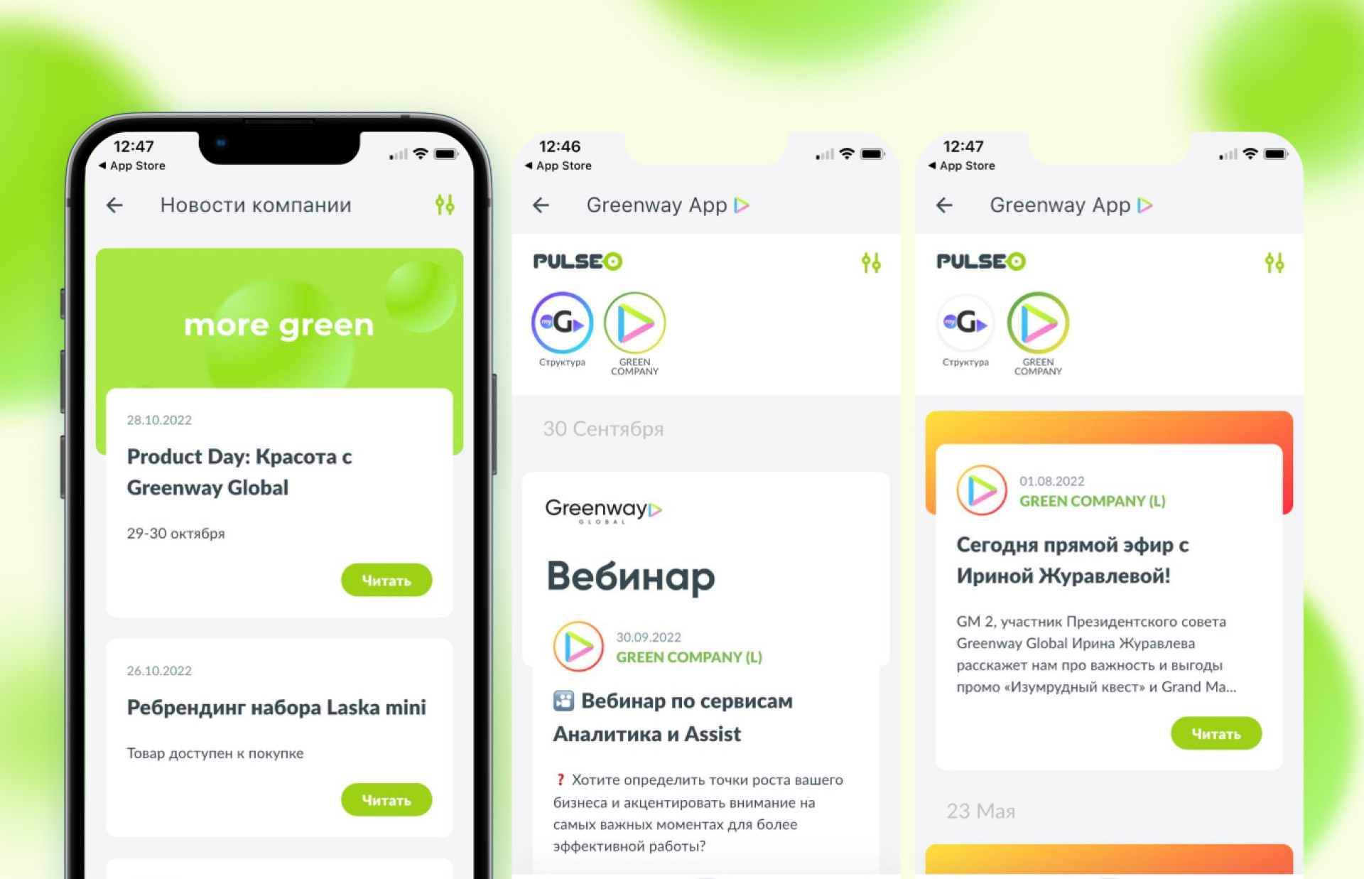 PULSE создает единое информационное пространство внутри Greenway Global. Благодаря этому инструменту партнеры всегда в курсе событий, которые происходят во всей компании и внутри каждой отдельной структуры.