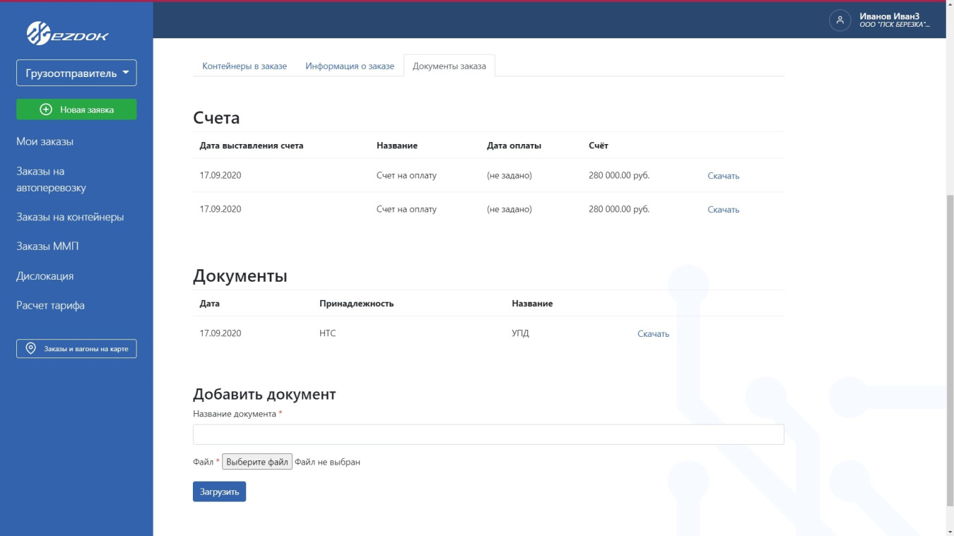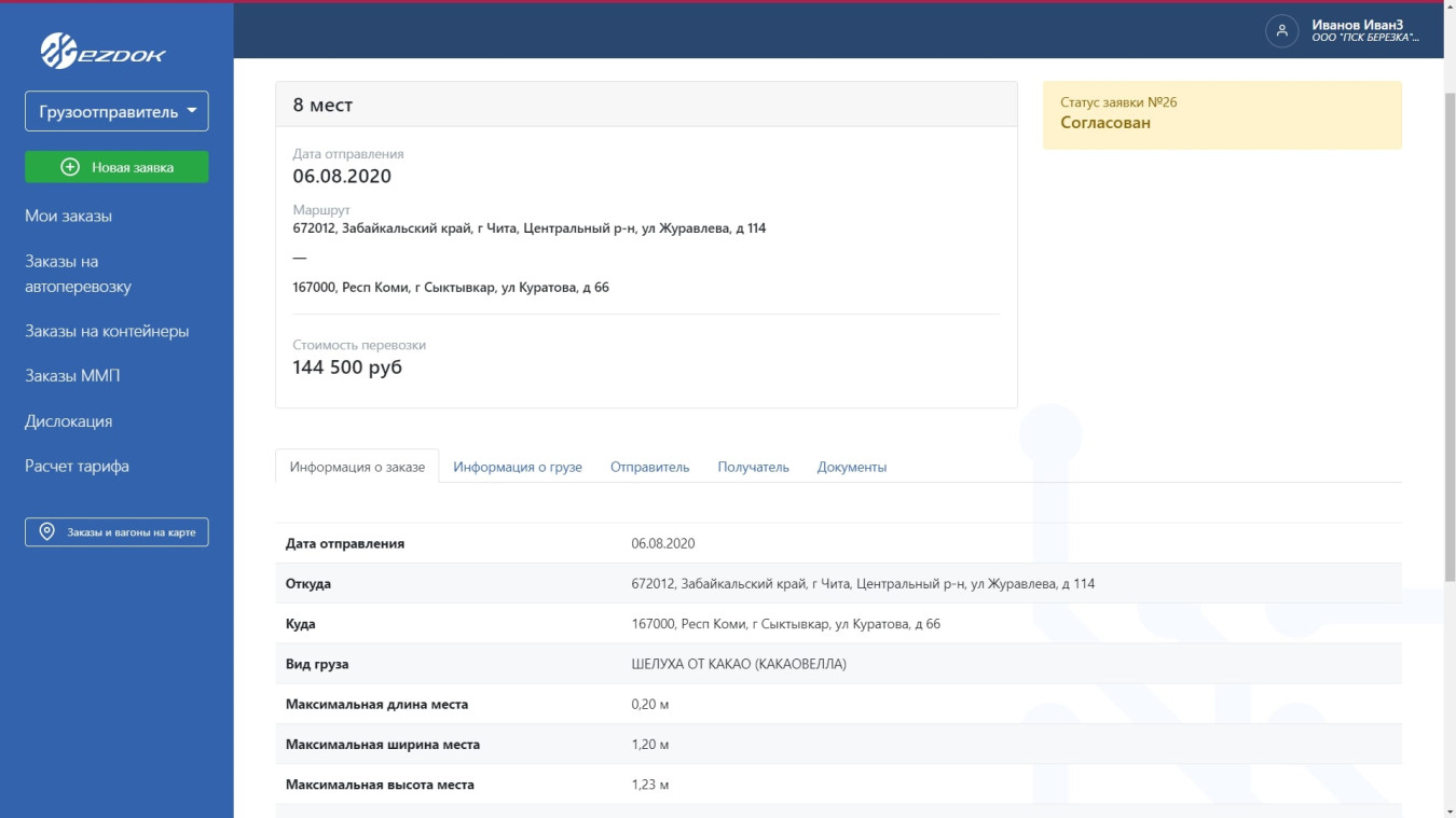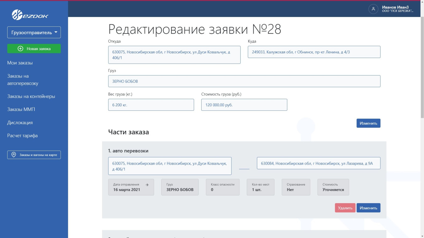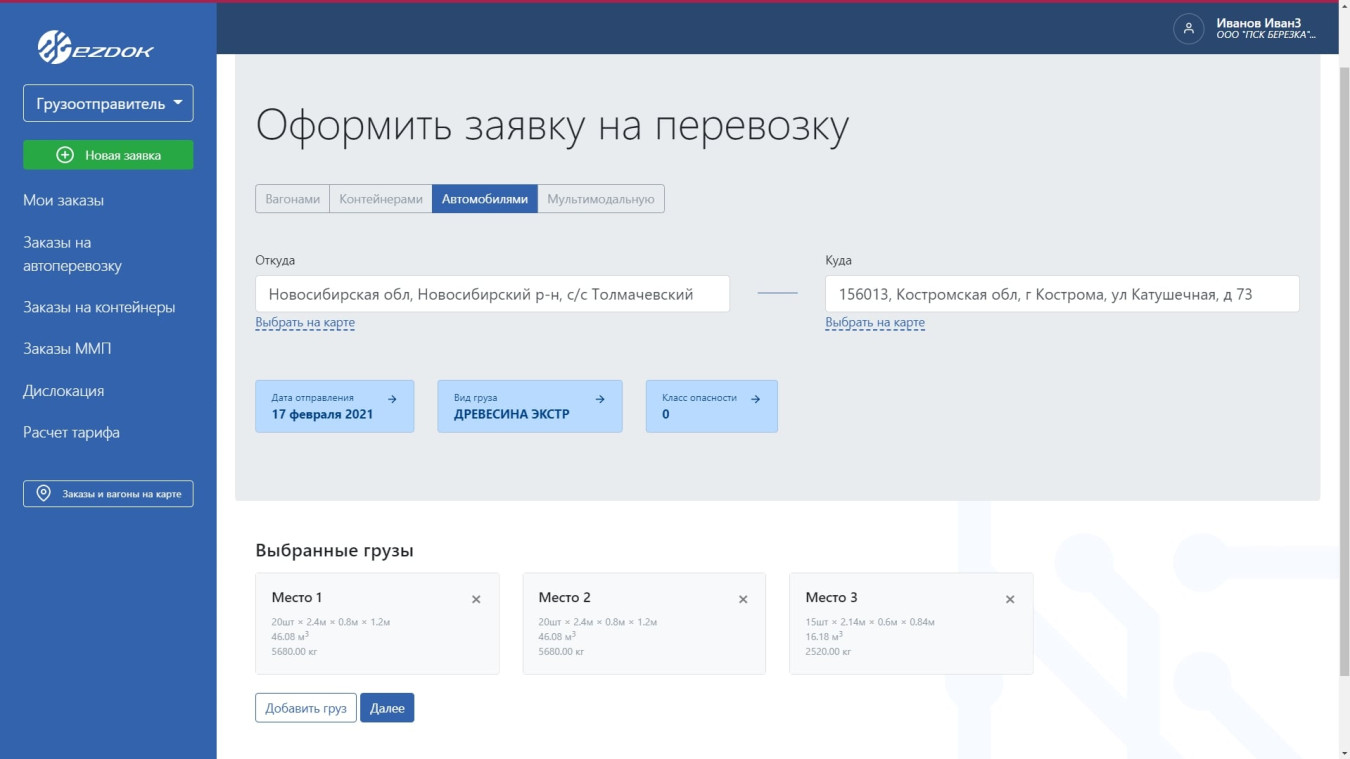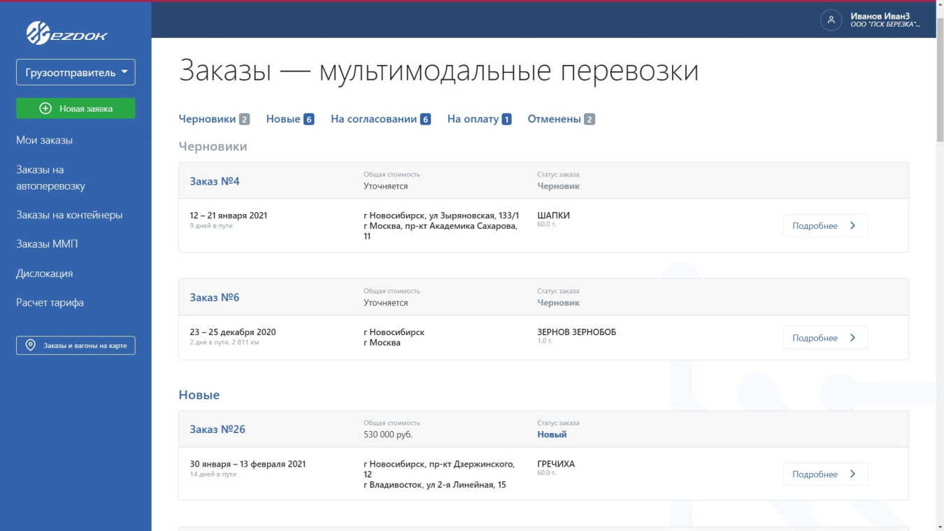 Здесь грузоотправитель создает заказы на магистральную перевозку по РФ и отслеживает их обработку, а перевозчикам предоставляется дополнительный источник заказов.