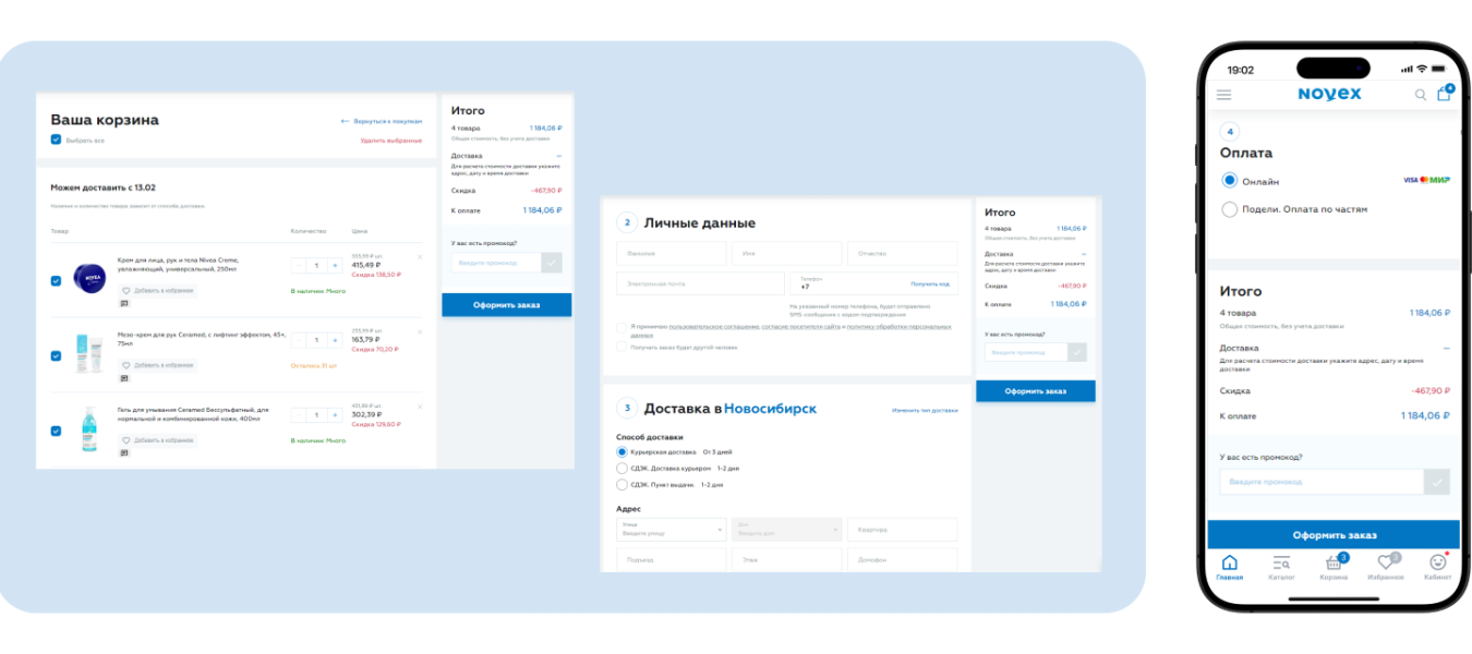 Мы упростили сценарий оформления заказа, убрали лишние переходы и состояния неопределённости, синхронизировали расчёты доставки и итоговой стоимости.