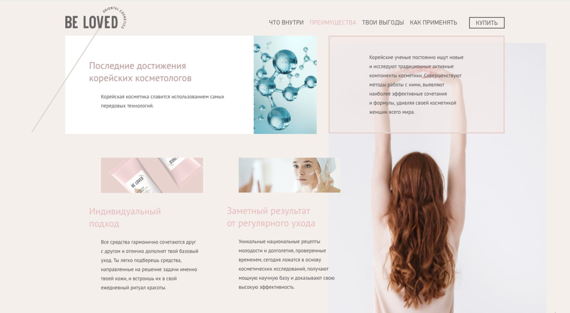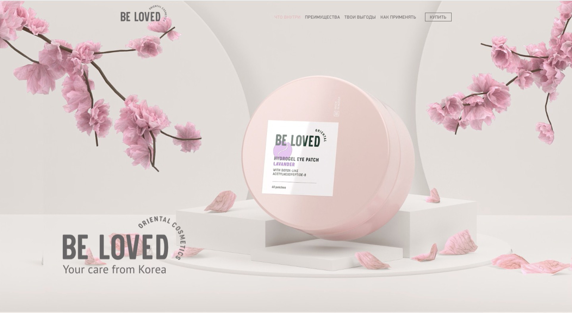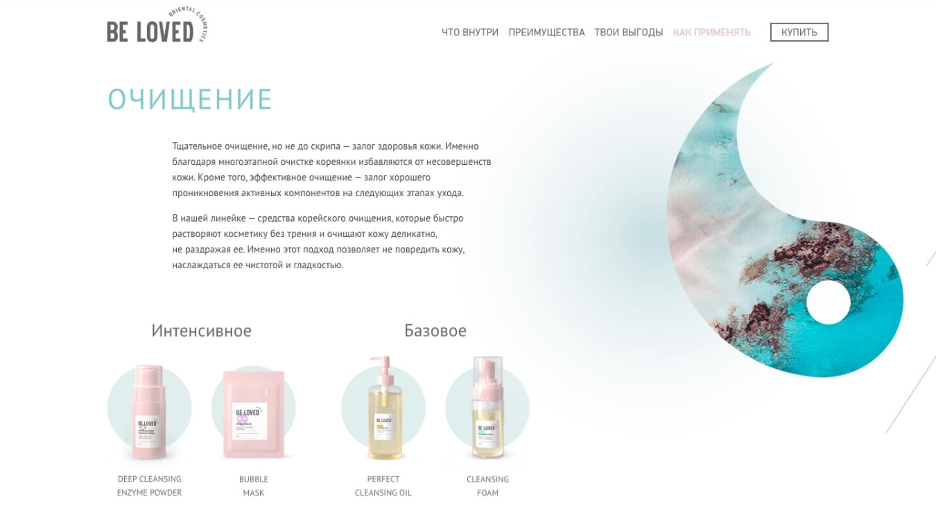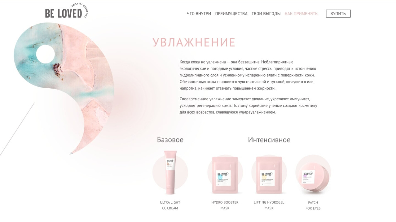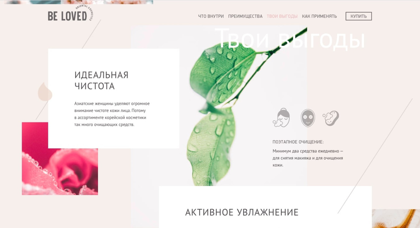 Сайт для корейской косметики Be Loved должен был не только представить товары, но и познакомить пользователей с философией ухода за кожей.