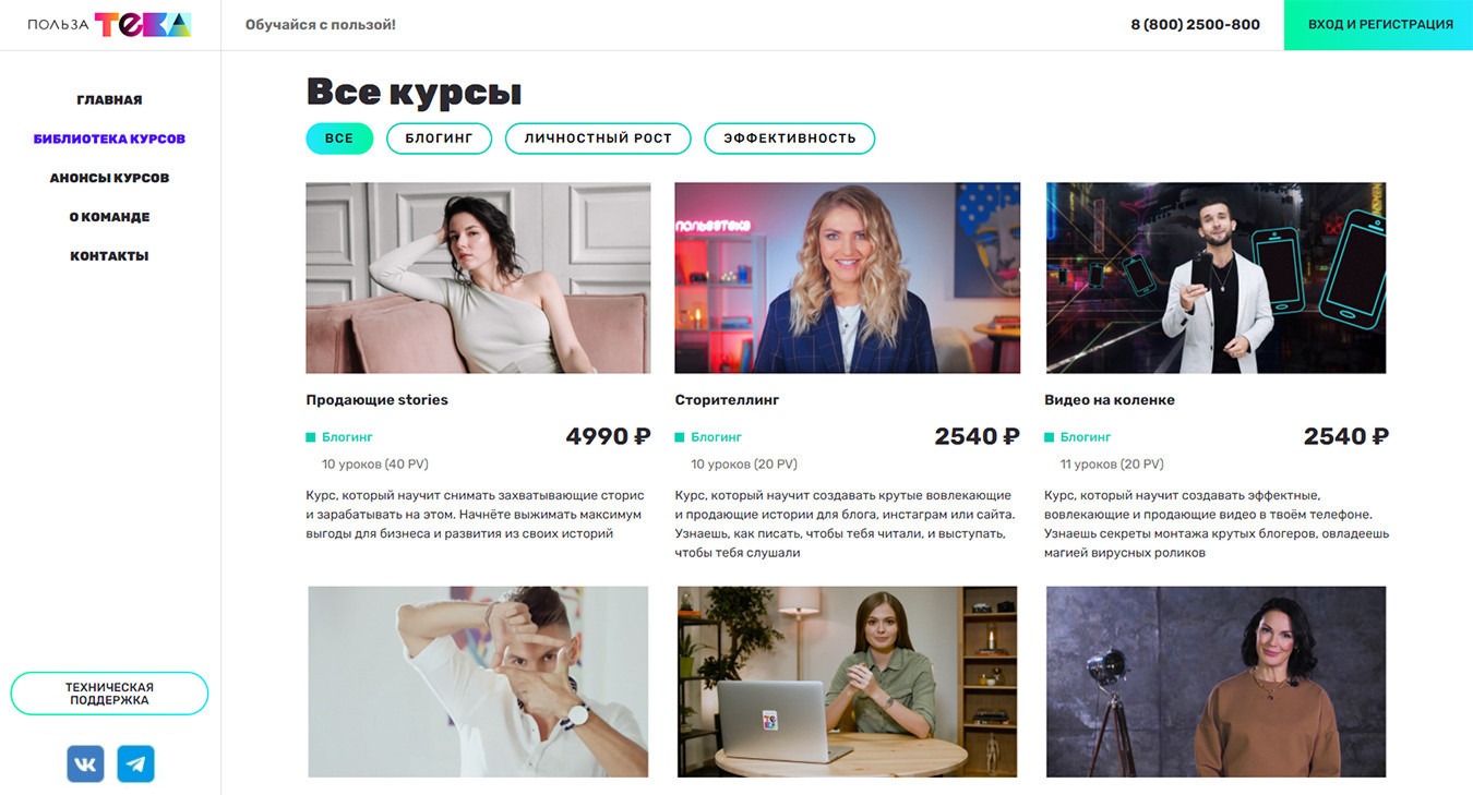 Для этого мы начали с исправления верстки главной страницы. Исправили форму регистрации и авторизации через социальные сети. Внесли корректировки на страницы с видео, чтобы все элементы отражались пользователю корректно. Прикрутили эквайринг и создали лендинги для продаж курсов.