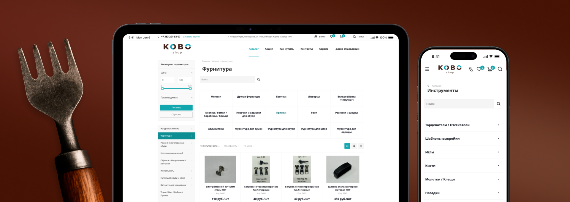 Для специализированного онлайн-магазина Koboshop мы сделали то, что мастера делают с кожей: убрали лишнее, прошили слабые места и собрали новый «фирменный фасон».