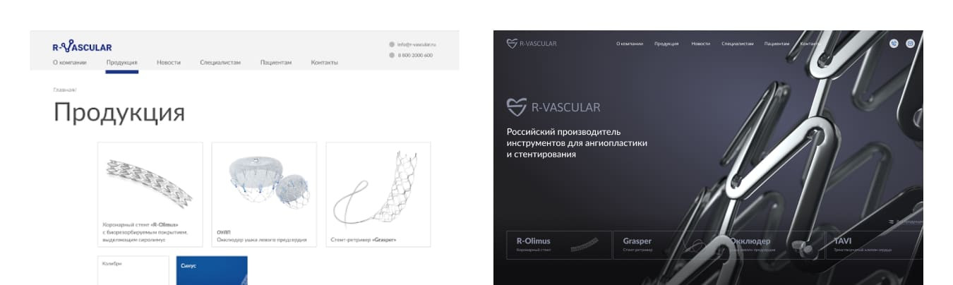 Проект R-Vascular с нами уже два года. Мы гордимся результатом, который получили, и продолжаем работу над совершенствованием внутренних страниц сайта.