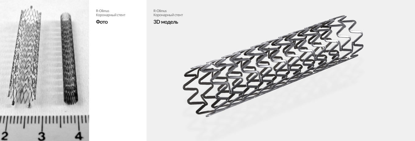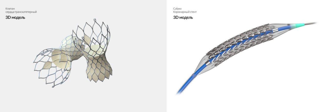 В данный момент 3D-видео размещено на странице одного товара — коронарного стента R-Olimus. Страницы остальных товаров приводятся в единый вид, пока что без 3D-видео. В перспективе все страницы товаров будут оформлены анимированными 3D-моделями.