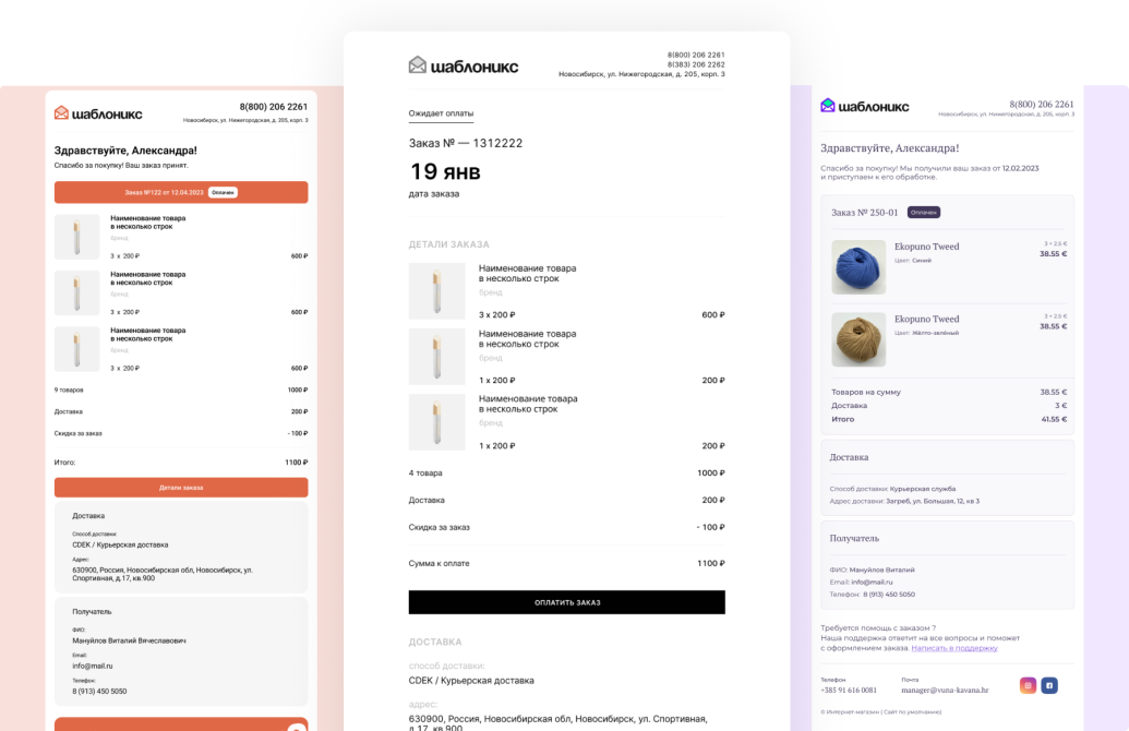 Когда стало понятно, насколько сильно такие письма улучшают клиентский опыт, мы оформили решение в продукт — Шаблоникс Письма. И теперь благодаря вдохновению от Vuna Kavana стильные готовые сервисные e-mail доступны любому бизнесу на 1С-Битрикс.