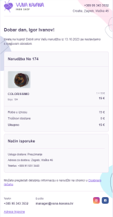 Всё началось с проекта разработки интернет-магазина Vuna Kavana с хорватской локализацией (читайте кейс, как мы делали интернет-магазин на шаблоне CMS Битрикс, работали с SEO и настраивали платежи). Магазину нужна была стабильная коммуникация с клиентами в брендовом оформлении: письма с информацией о заказах, оплате, доставке и изменениях статуса.